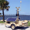 With a rugged, transportable trailer assembly and 25' mast as the base platform, Black Wolf™ comes standard with a pan/tilt mounted thermal and color camera sensor package, wireless encrypted Ethernet radios, and laptop PC controller. Designed to operate for 7 days without solar renewal, Black Wolf™ sets up in 15 minutes and requires no tools to deploy. This turn-key day/night surveillance system allows its users to remotely access and control the cameras up to 10 miles away via a wireless PTP Ethernet data link. Configured to be Internet Ready, Black Wolf™ is web accessible using an internet browser. Multiple Black Wolf™ units can be networked together in either linear or perimeter arrays for added coverage.